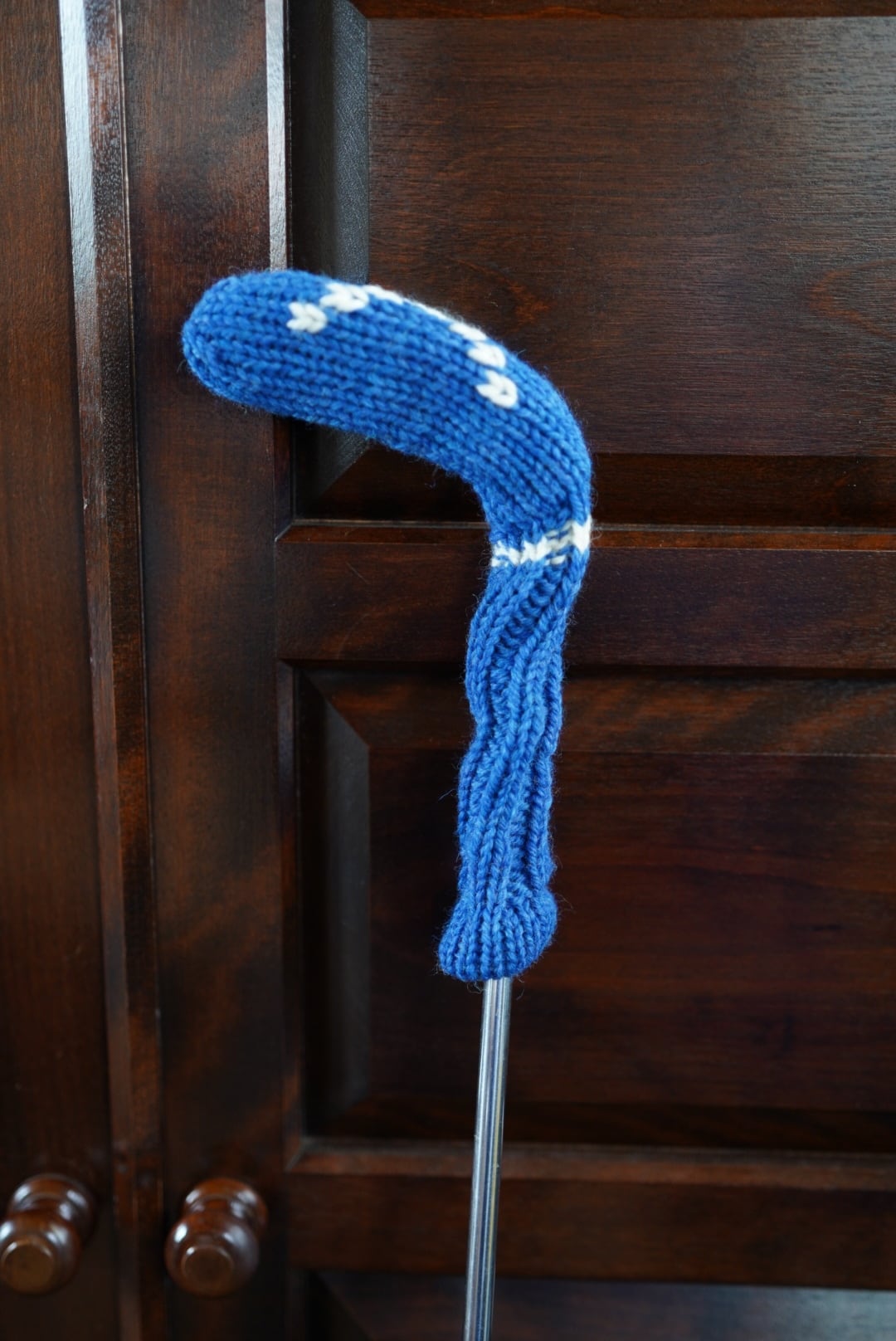 Wilson 8802やMacGregor IMG5などのクラシカルL字パター専用にサイジングした手編みニットカバーです。ヘッド部は2枚重ねで大事なパターヘッドをしっかりと保護します。また、従来の汎用ヘッドカバーでありがちだったラウンド中の脱落などもジャストサイズなので心配いりません。